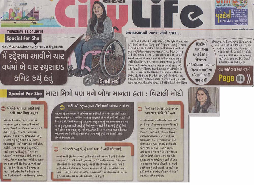 Virali is extremely passionate about writing, modeling and acting. Currently, Virali Modi is a disability rights activist who runs two successful campaigns – #MyTrainToo and #RampMyRestaurant. She’s a motivational speaker who has given two TEDx talks, is a writer on Quora with over 95,000 followers, a Youth Ambassador with the travel company Enable Travel which is powered by Cox And Kings and is India’s first premier accessibility holiday specialist which caters to the disabled and senior citizens, a model, and an actress. She was named as one of the most influential and inspirational women by BBC 100 Women this year, was featured in Femina magazine, and has two Women's Achievement Award by Delhi Commission For Women on Women’s Day 2017 and The Rising Star of India award by We Are The City. Recently, she was invited to Kerala to inaugurate the Divyangjan project by Mathrubhumi Newspaper at Ernakulam Station. Because of her campaign, #MyTrainToo, she’s currently contributed to making six stations in South India, wheelchair accessible with the help of portable ramps and small wheelchairs. She’s working very hard to promote the same accessibility in other states of India.