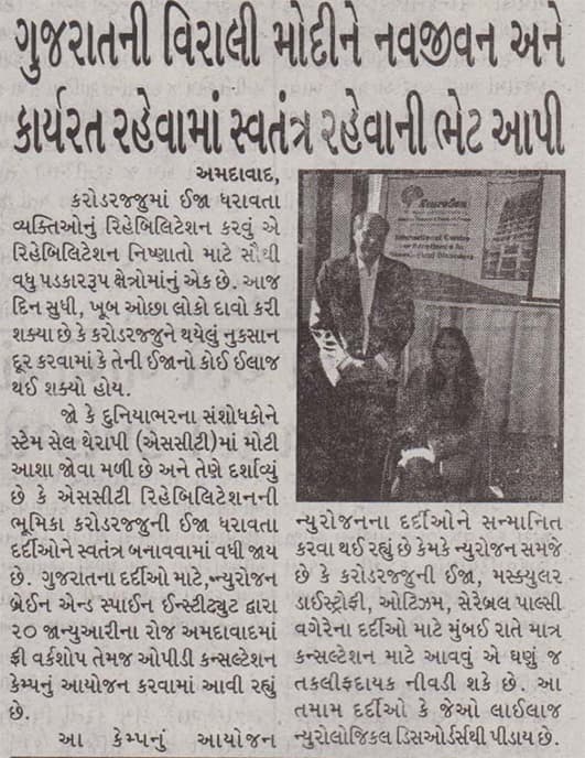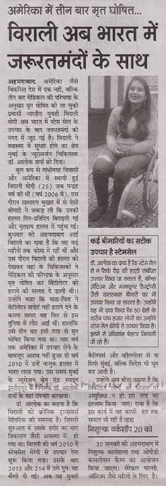 The full of life wheelchair bound young girl, Virali, was crowned MISS WHEELCHAIR INDIA – 1st runner up for the year 2014. The desire to become fully mobile, dance, travel etc. made Virali to undergo Cell Therapy for the third time in 2014. “After the third cell therapy, I can comfortably walk with a walker, climb stairs, I feel more strength in my lower body; and my upper body is completely normal. I have gained bowel and bladder control, and I even go to the gym for 2-3 hours everyday’’ says Virali.