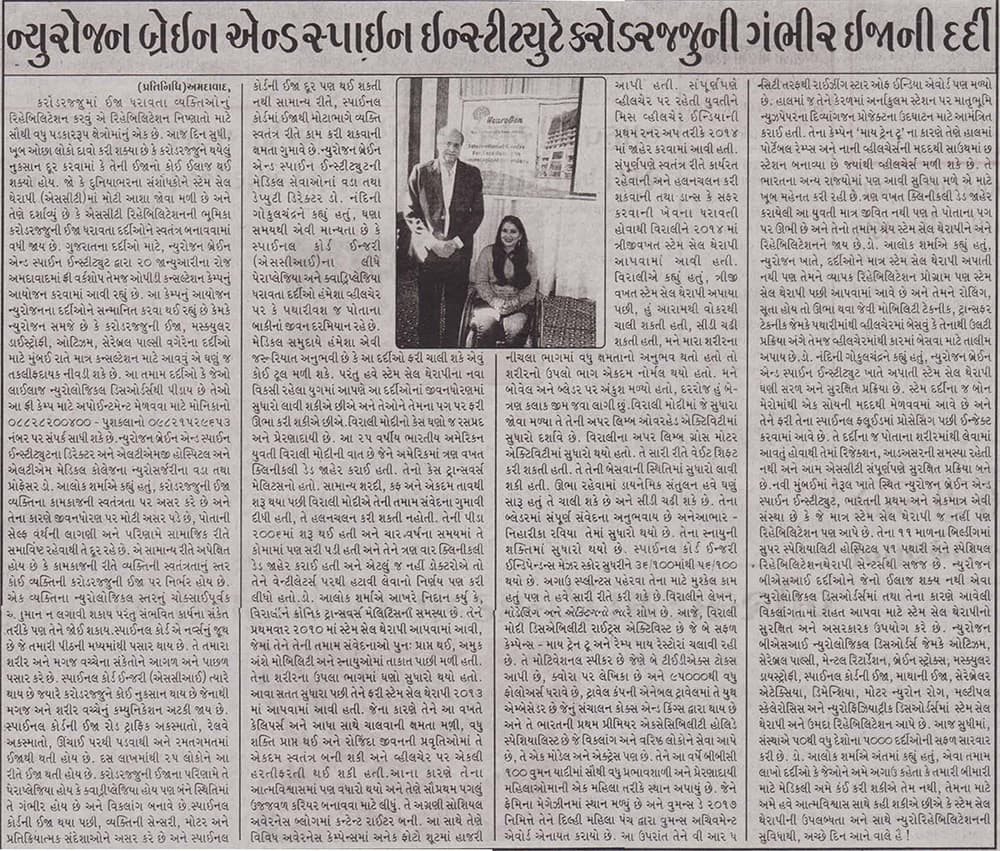 Dr Alok Sharma further said “At NeuroGen, the patients are not only given cell therapy but also put on an extensive neurorehabilitation program following cell therapy and are taught bed mobility techniques like rolling, getting up from lying down position as well as transfer techniques like transfer from bed to wheelchair and vice versa, wheelchair to car and so on.”